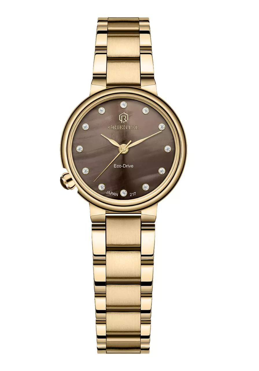 ساعت مچی اورینتال زنانه استیل طلایی صفحه کافی مدل O.SH217L-0126