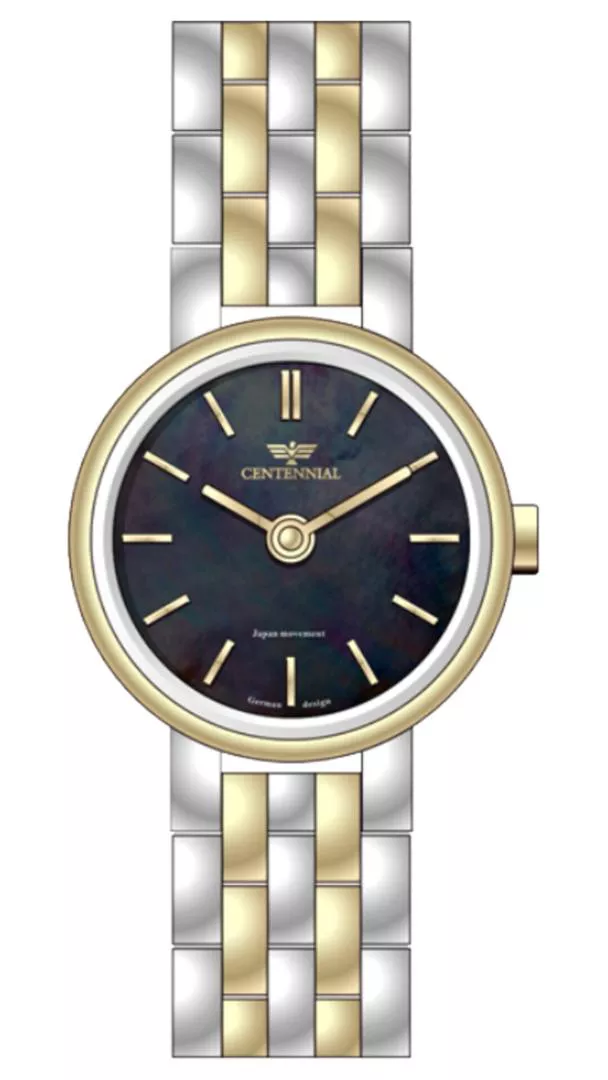 خانه ساعت برندهای اورجینال CENTENNIAL ساعت زنانه سنتنیال استیل سیلور طلایی صفحه مشکی مدل 40