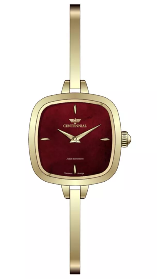 خانه ساعت برندهای اورجینال CENTENNIAL ساعت زنانه سنتنیال استیل طلایی صفحه زرشکی مدل 63