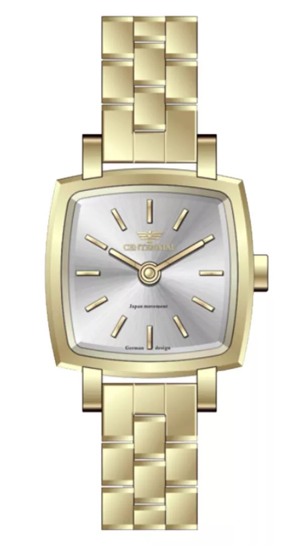 خانه ساعت برندهای اورجینال CENTENNIAL ساعت زنانه سنتنیال استیل طلایی صفحه سیلور مدل 10
