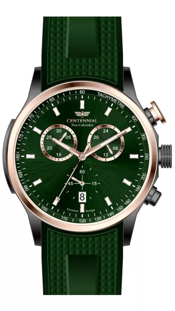 خانه ساعت برندهای اورجینال CENTENNIAL ساعت مردانه سنتنیال سبز قاب رزگلد مدل 145