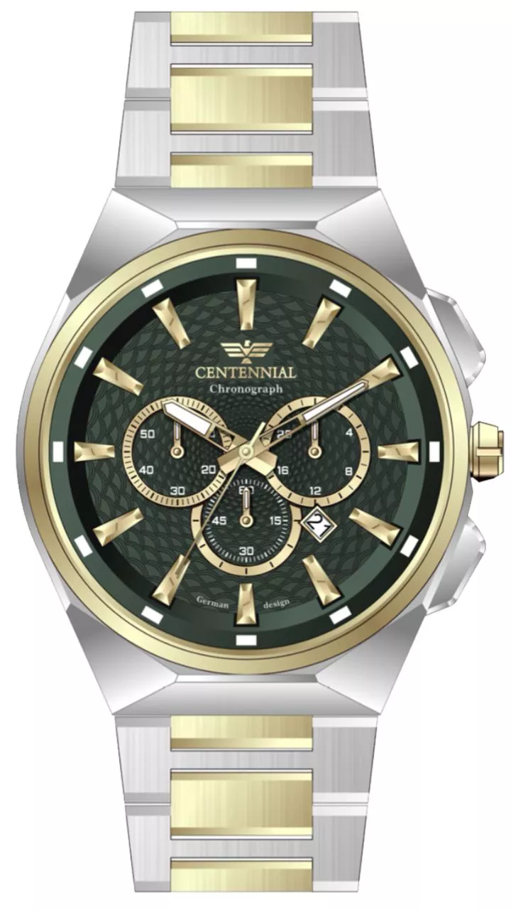 خانه ساعت برندهای اورجینال CENTENNIAL ساعت مردانه سنتنیال سیلور طلایی صفحه سبز مدل 86