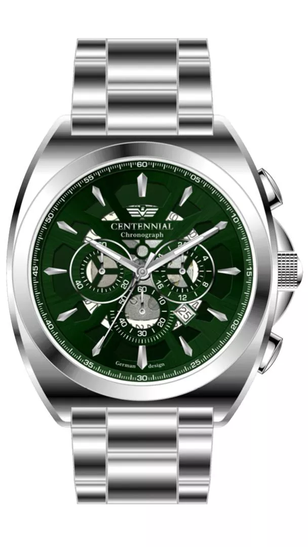 خانه ساعت برندهای اورجینال CENTENNIAL ساعت مردانه استیل سنتنیال سیلور صفحه سبز مدل 188