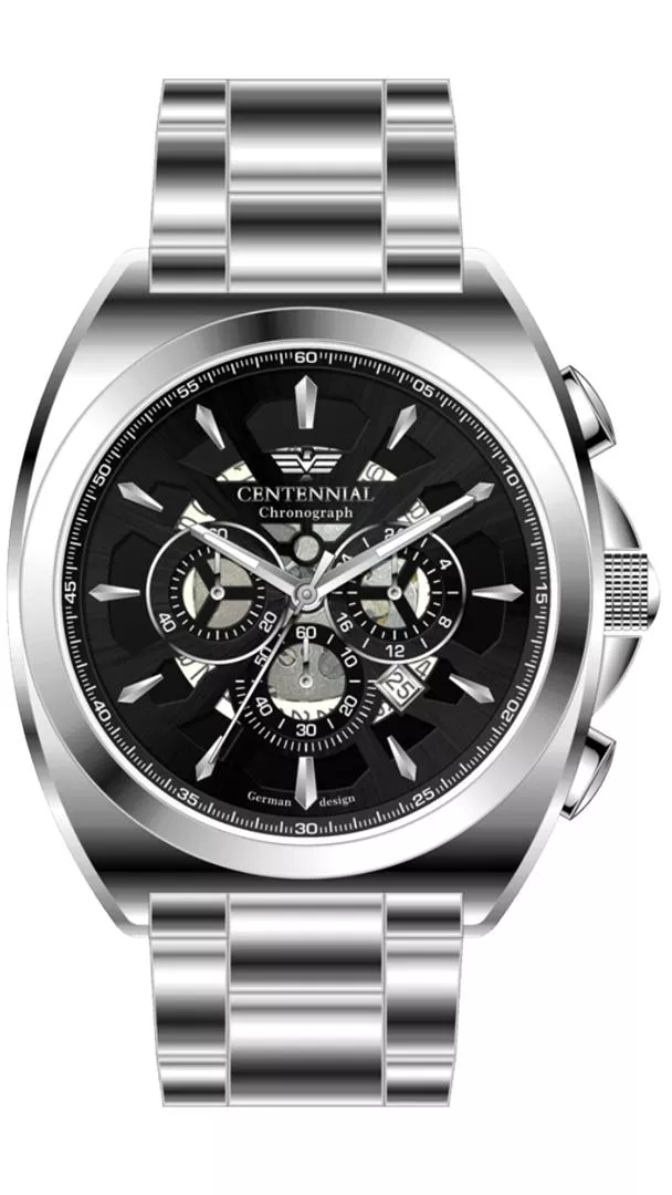 خانه ساعت برندهای اورجینال CENTENNIAL ساعت مردانه سنتنیال سیلور صفحه مشکی مدل 185