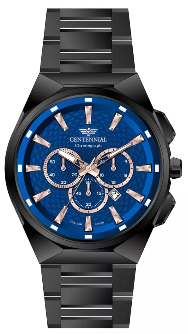 خانه ساعت برندهای اورجینال CENTENNIAL ساعت مردانه سنتنیال مشکی صفحه آبی مدل 88