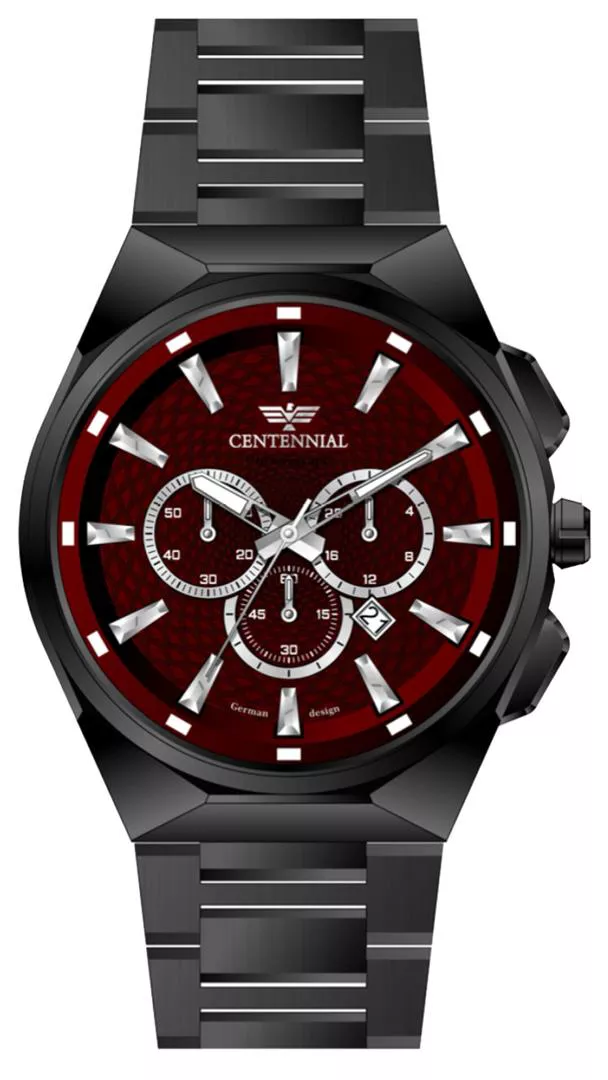 خانه ساعت برندهای اورجینال CENTENNIAL ساعت مردانه سنتنیال مشکی صفحه زرشکی مدل 90